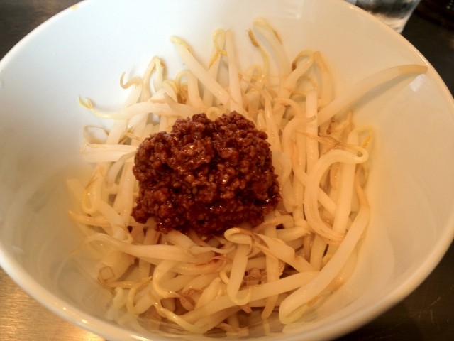 しばし待つと、突出しみたいに「肉味噌もやし」が登場。