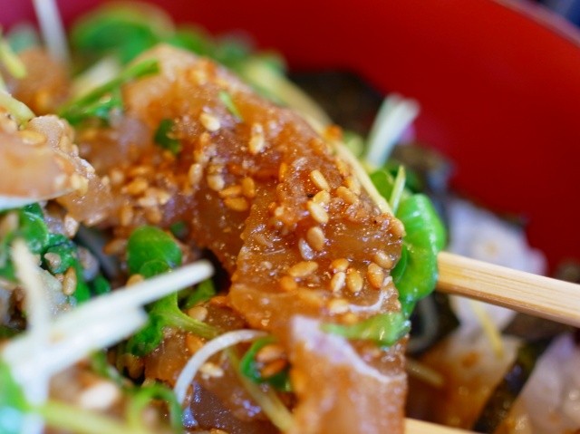 鯛の鮮度が良いので、美味。わさびのピリ辛感も程よいアクセントに。