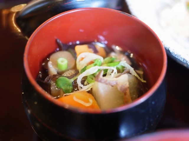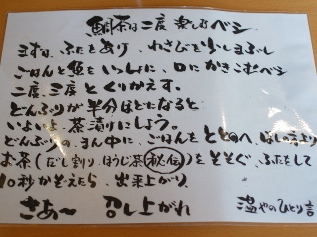 これは「秘伝のほうじ茶」となっていますが、カツオや昆布、上質の焼きあご(トビウオ)などで取った和ダシに、ほうじ茶を香りづけで加えているもの。ひと手間ふた手間かかっているのが嬉しいですねー。