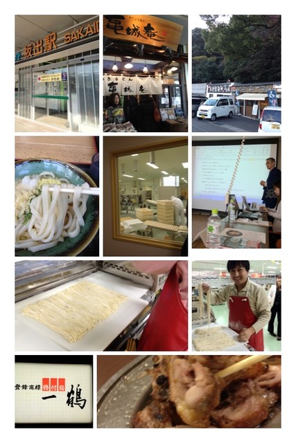 1日めは、うどん2軒回って、うどん工場見学、藤井社長と2時間半の意見交換、実際にうどん製麺体験、そして一鶴でお食事会。
