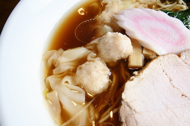 鶏がらベースの動物系スープと、煮干しなどで採った魚介系スープを別々に作って合わせる、いわゆるダブルスープ。両者のバランスが非常によい仕上がり。鶏油のふくよかな風味も漂います。チャーシューは三元豚で、脂分が少なくて、しっとり。