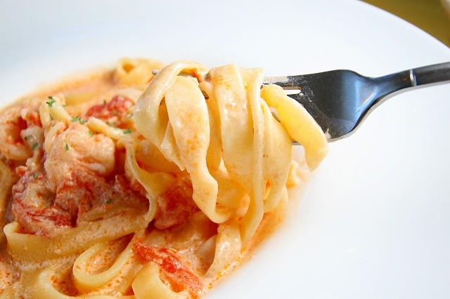 今回は手打ちパスタの「海老とトマトのクリーム」を選択。