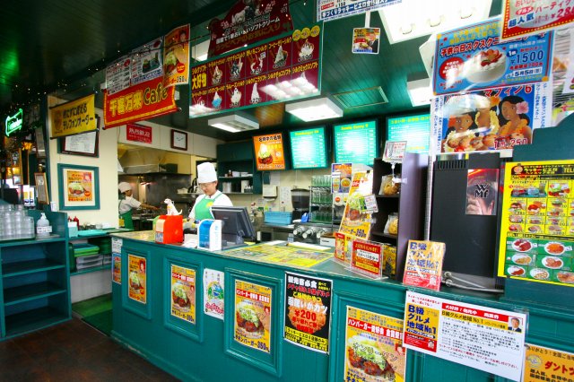 人気No.1のバーガー類はどこにもありますが、店舗によって、とんかつ、お好み焼き、焼そば、オムライス、ステーキなどなど……