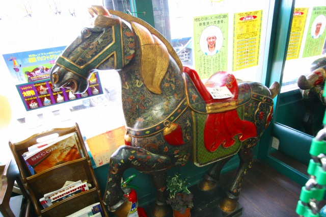 店内も、さすがです。木馬がある。というより、つりさげのブランコが!