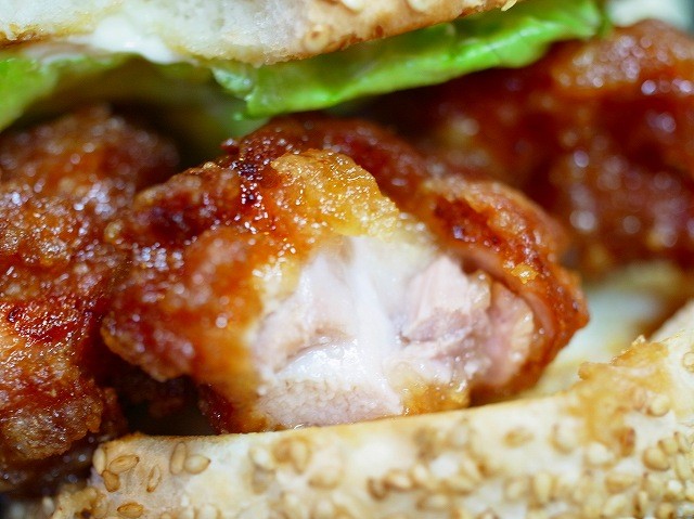 いやぁ、旨いし、ここでしか味わえない美味しさ。中華味のソースが揚げたての鶏から揚げに絡んでジューシー。しかもその風味がじゅわっとバンズなどにも染みこむ!