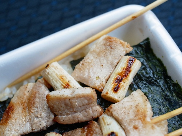 コンビニでできたてが買えるやきとり弁当は豚だった!