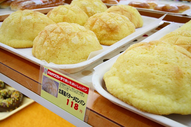 北海道産のバターをたっぷり使用し 懐かしい味にしあげたさっくりメロンパンの「北海道バターメロンパン」(118円)など、魅惑のパンがめじろおし!