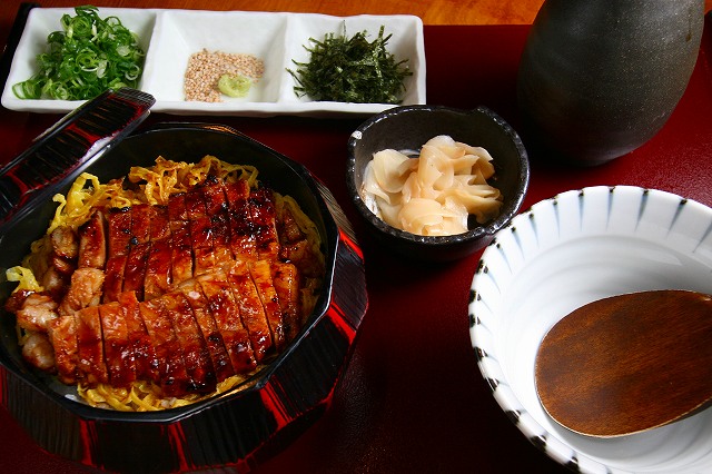 かつお&昆布の程よい和風テイストと、まったりとした豚蒲焼&タレの風味が上手に手を繋ぎますねー。それになんといっても、3通りの味わい方ができて、お得な気分。