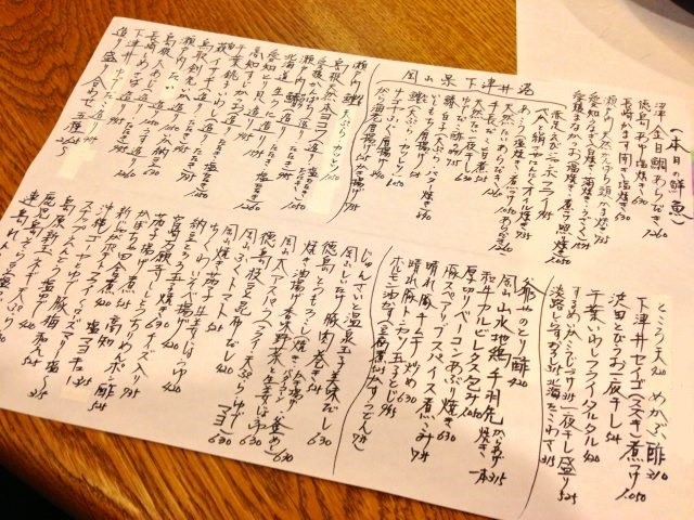 そんな「爺や」のメニューを見れば、真剣さは一目瞭然。本日のオススメだけでも、こんんなにたくさんあります。焼酎は100種類以上あるとか。