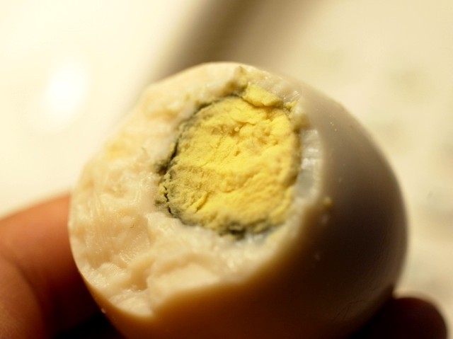 蒸し玉子を塩水に暫く漬け込んだ玉子は、温泉玉子の独特の風味に、程よい塩加減が加わっています。