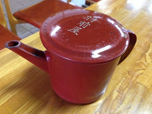 ふとメニューを拝見すれば、「お酒」の文字。こういう粋というか昔ながらの書き方にも歴史を感じますね。もちろん日本酒のことです。オーダーしたら、いやぁ、昭和テイストふんだん。