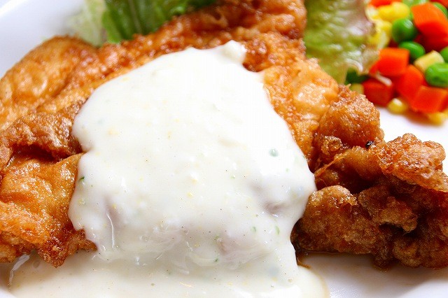 油で揚がったチキンに、タルタルソースが、量も多めに、とろりとかかっています。