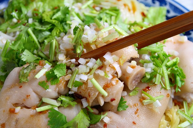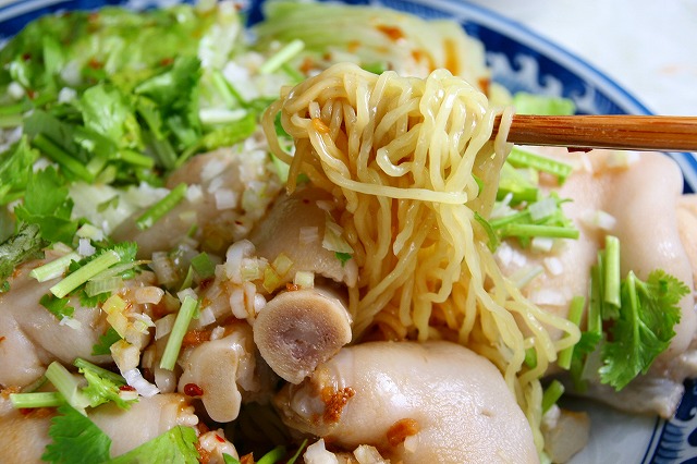 醤油ベースでラー油や酢などを加えた味付けは、さっぱりとして、食べやすい。