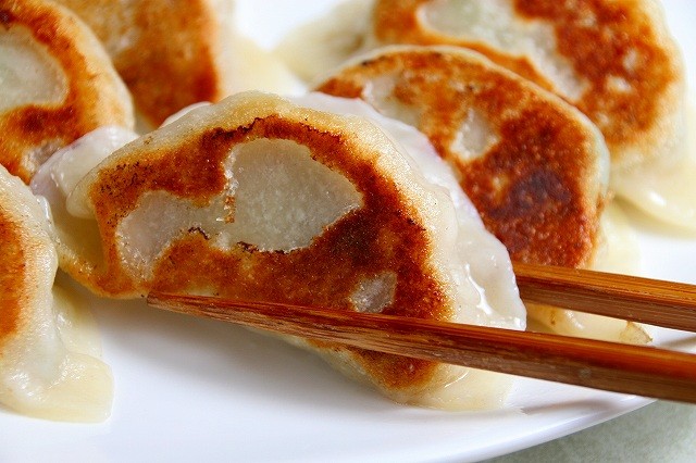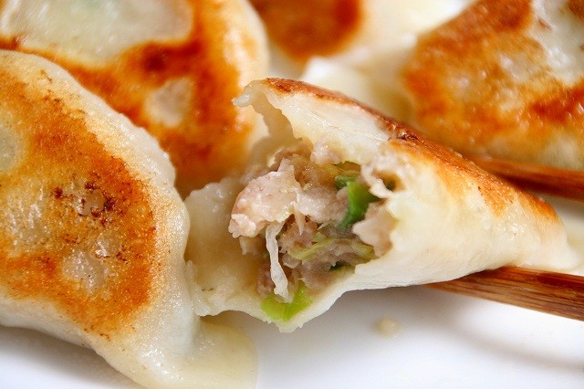 これもいいですね。豚ひき肉やニラ、キャベツ、玉ネギの入った餃子は、にんにく、生姜の風味もほんのり香ります。皮も手作りだそうで、これが、もちもち!!