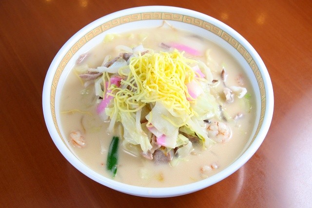 こちらが、「ちゃんぽん」。これは中華料理の調理技術と長崎の山海の食材によって生まれた、長崎生まれの中華料理。当時の華僑同士のあいさつ言葉「シャポン(ごはん食べた?)」から転じて、「ちゃんぽん」になったとも。
