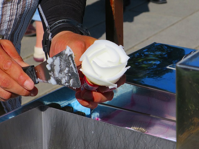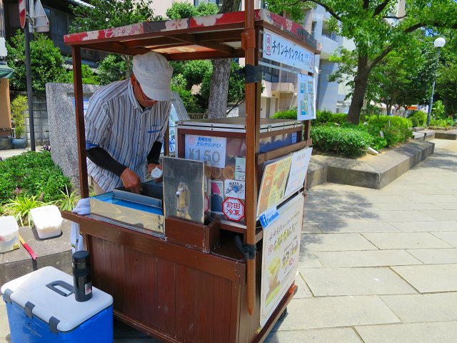 というのも、屋台ではアイスが溶けないように、大量の氷と塩が必要なのですが、その按分などが難しいのだとか。