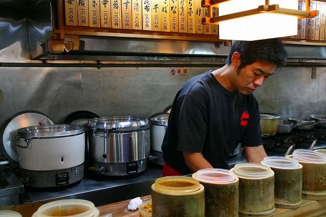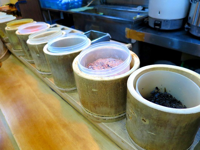 なので、カウンターの前には大きな竹筒に入った“具”も、ずらりと並んでいます。