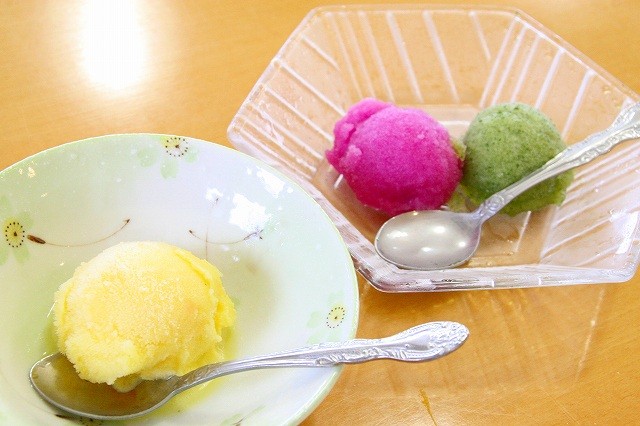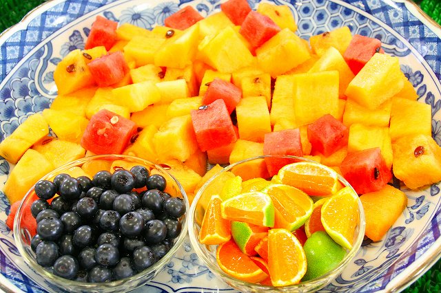 赤や黄色のスイカ、早どりみかん、地元産のブルーベリーなど。