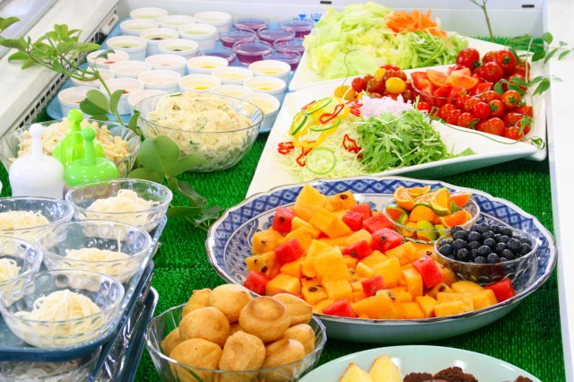 美味しそうな和洋中料理や、旬の地元野菜、スイーツなどが、ずらり!