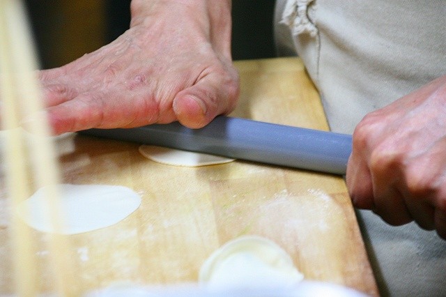 せっせと皮を伸ばしては、餡を入れていきます。