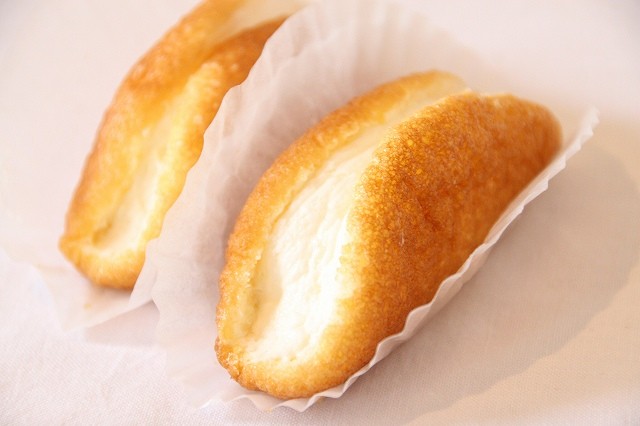 表面に軽く焦げ目の入った、ふんわりと優しい生地に、ふわふわとして優しい口あたりの生クリーム。小ぶりで食べやすく、思わずクセになりますね。1つ40円という低価格も魅力。10個食べても400円だ! 実際、10個、20個と購入されていく方も多いとか。400円以上だと無料で箱&保冷剤もいただけます。
