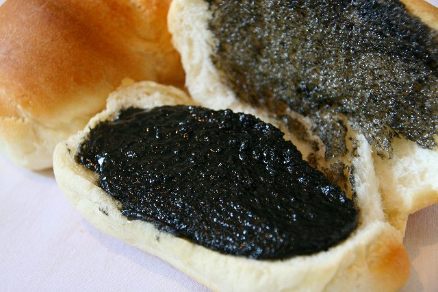 中には黒ごま、しかもはちみつと黒砂糖が合わさり、パンに塗られています。