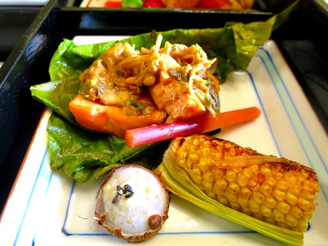 つる菜や赤万願寺、柚子も彩りを風味を加えています。