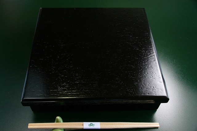 さて、料理が運ばれてきました。松花堂弁当。松花堂ならではの四角い重箱。黒塗りの上蓋を開ける瞬間、ドキドキワクワク。