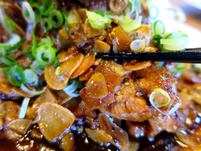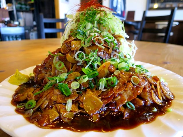 豚肉を焼いた後に、特製のソースやニンニクチップとともにさっと煮て完成。濃厚なソースと爽やかなキャベツが合いますね。噛み応えのあるのも嬉しい限りで、豚肉も250gくらいあるそうで、おなかいっぱい。