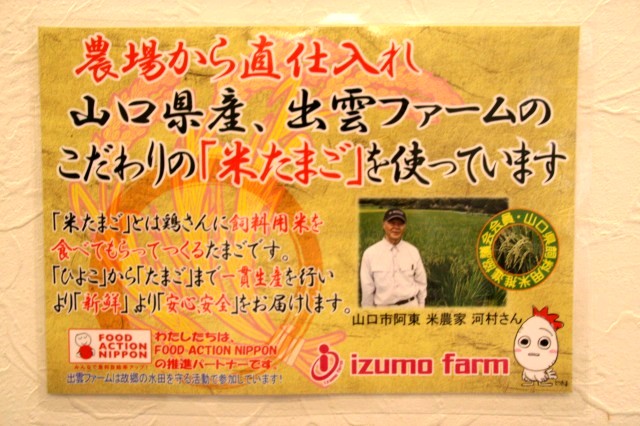 山口県・出雲ファームのこだわりの「米たまご」を使用しているみたい。