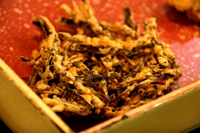 『地蔵庵』では天ぷらも各種揃っています。とり天やまいたけ天などのほか、面白いのだと、バリバリ昆布。切って刻んでごまと一緒に揚げているそう。