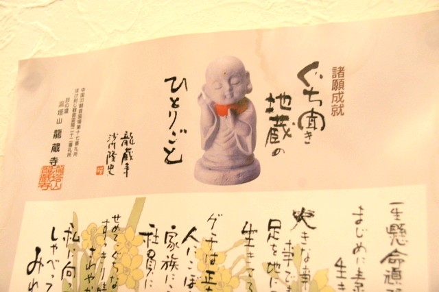 たまたま市内には有名な、中国33観音霊場第17番札所の「龍蔵寺」という、「ぐち聞き地蔵」で有名なお寺があり、店内のは全て龍蔵寺の作品。