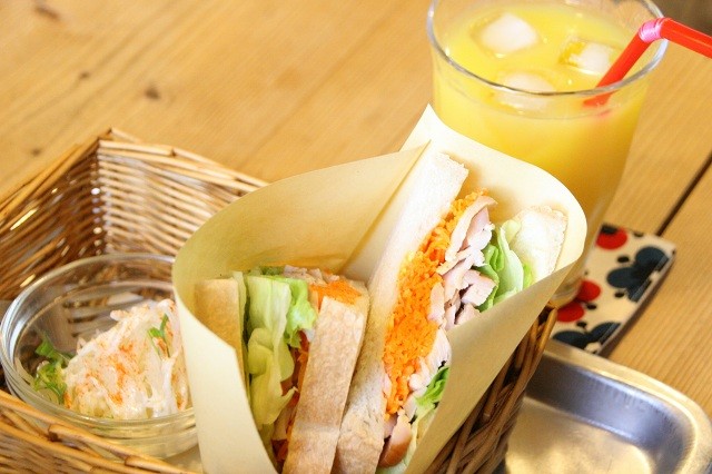 というわけで「スモークチキンとにんじんマリネ」のサンドイッチを。+200円で、ドリンクセットになります。