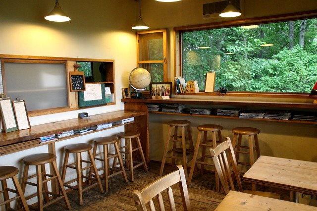 店内も木の温もりが活きています。カウンター&テーブル席。
