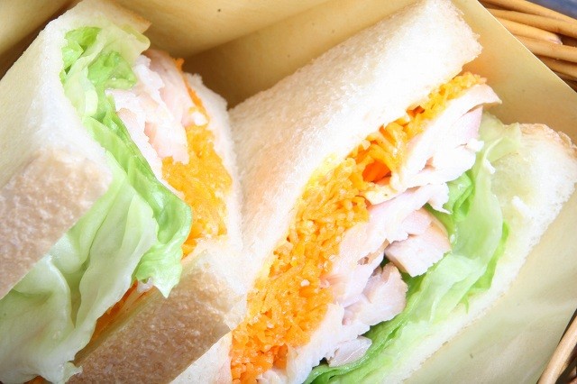 香ばしきパンにサクサクっとしたレタスとほんのり甘めなにんじんマリネ、そしてスモーク風味の爽やかなチキン。