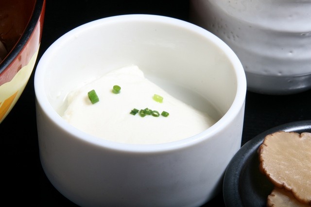 秋田美人豆腐、比内地鶏スープ、がっこ付き。