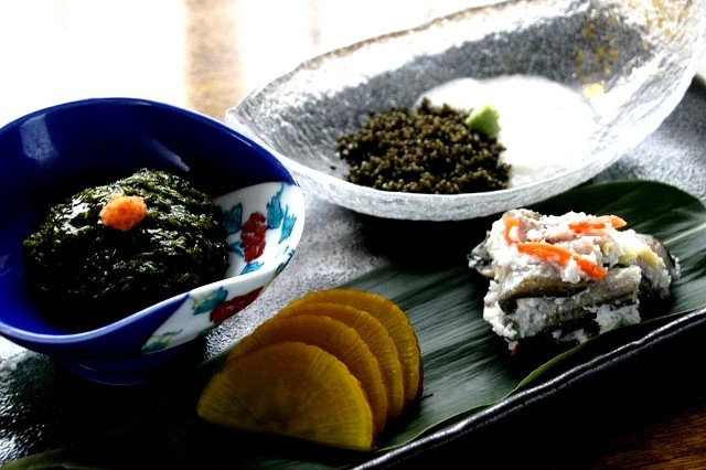 ぎばさ、とんぶりとろろ、いぶりがっこ、はたはた寿し。