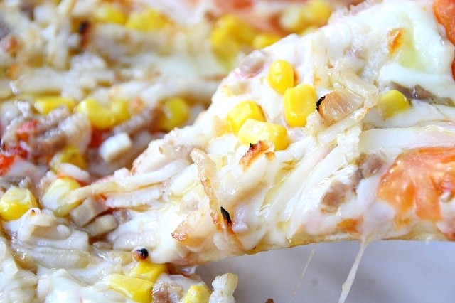 十勝産小麦粉100%の生地に、自家製ベーコンや玉ねぎ、コーン、そしてトマトソースのベースにモッツァレラミックスチーズ。