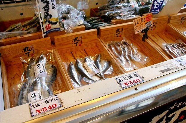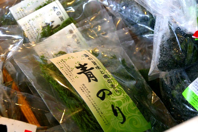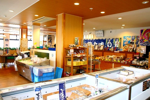 国東半島で採れる、さばやあじなどの干物、車えび、青のり、地だこなどが目に飛び込んできます。