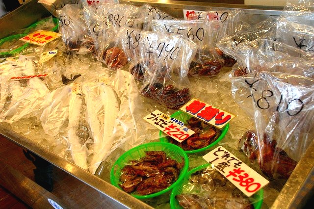 店内へと向かうと、いきなり美味しそうな海産物たちの販売コーナーが!