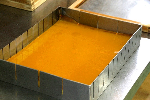 木枠のついたガラス板に流し込みます。