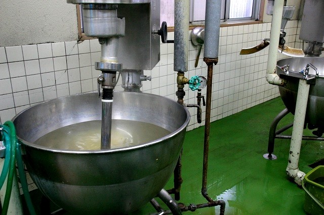 工場は通りを挟んだ向かいにありました。原料は村山産の梅、長野の寒天、砂糖のみ。