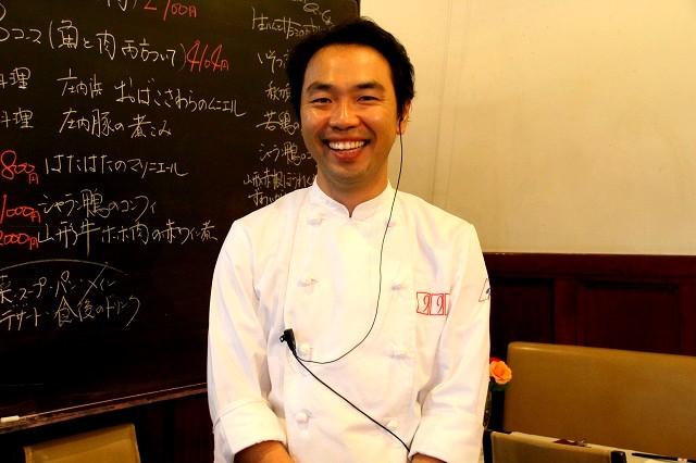 柔らかさとコクが素晴らしいですね。赤ワインにつけたり、煮たり、また、つけたりで1週間がかりの作品。手前の里芋は山形特産、高級里芋の“あくどいも”。