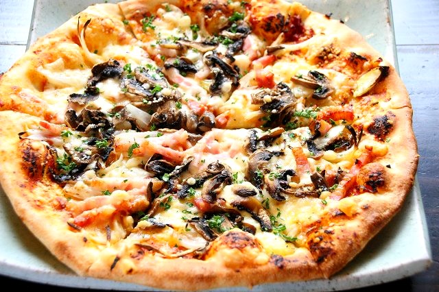 「舟形マッシュルームのピザ」