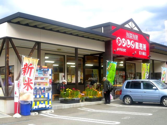 東側出入口の向かいには、広々とした専用駐車場と、『旬菜旬果 おいしさ直売所』という、稀少な伝統野菜や地元生産者による新鮮で安心・安全な農作物の直売所が。