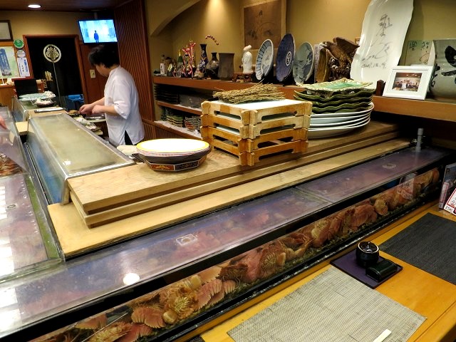 カウンターもさらにびっくりです。ネタケースがあるところも、生簀になってる!