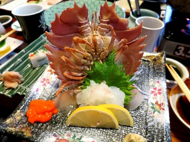 さっきの「うちわえび」のお造りや焼いたバージョン、お味噌汁も出てきた!