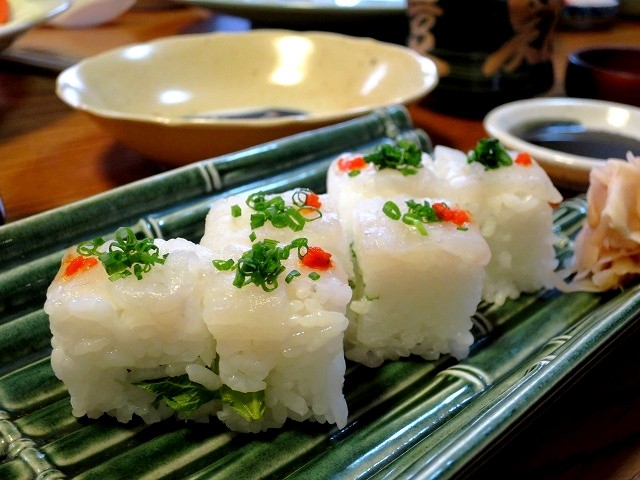 今度は「ふぐの押し寿司」みたいのが登場。