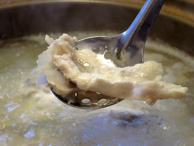 熱々のトラフグは、熱を通すことでふわりと柔らかく仕上がります。