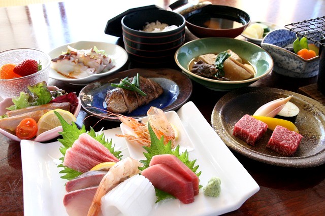 「奈半利まぐろ定食」「南まぐろのタタキ定食」「土佐和牛ビフテキ」、その他、一品料理など。